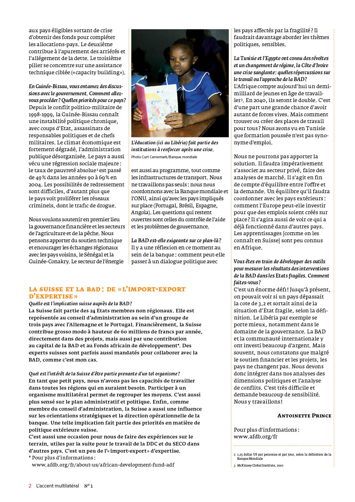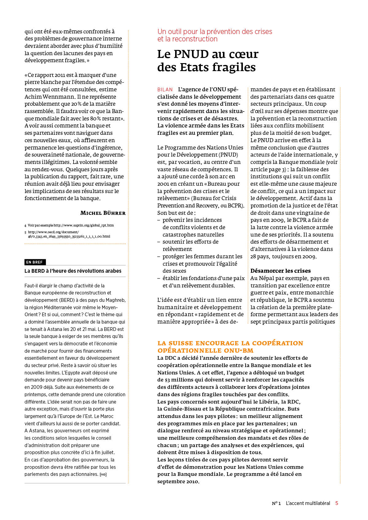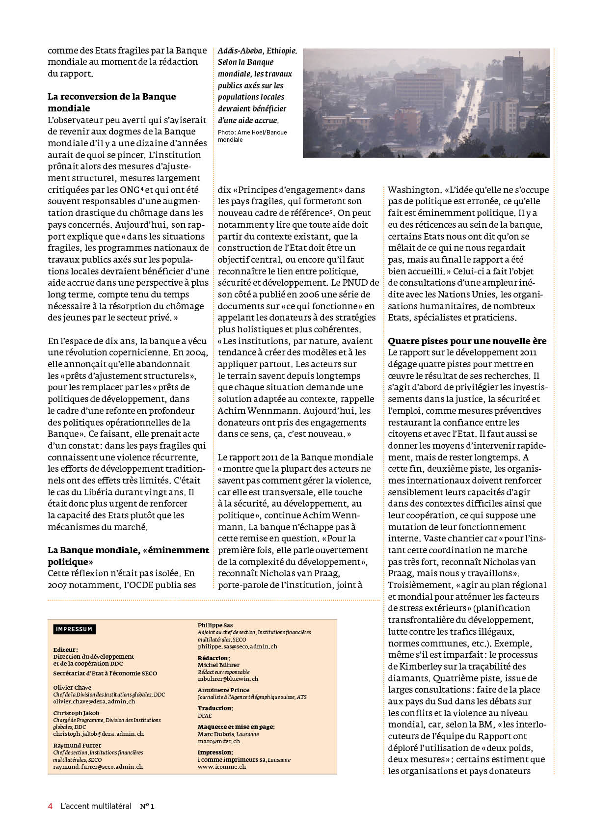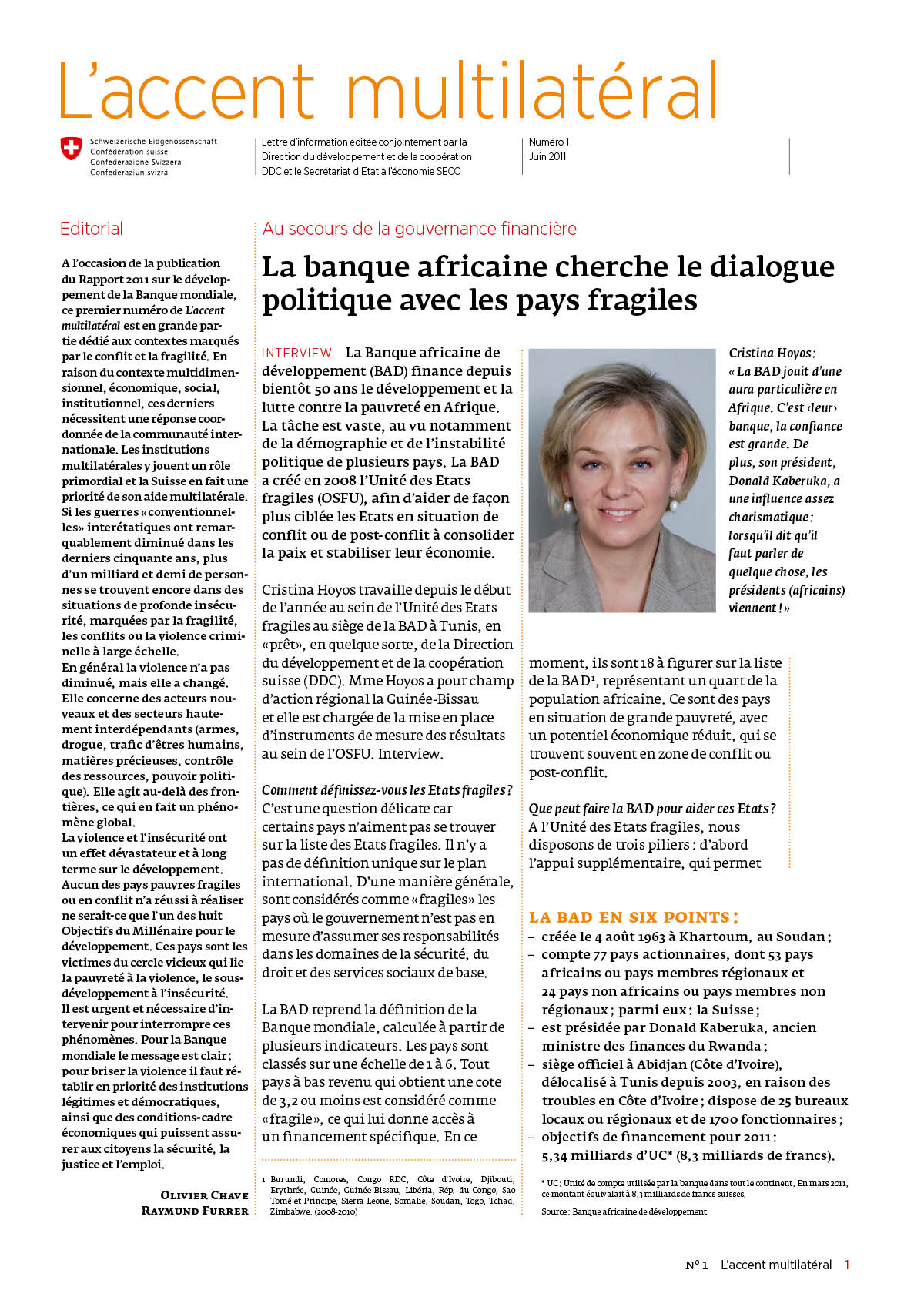 L’accent multilatéral, lettre d’information éditée conjointement par la Direction du développement et de la coopération DDC et le Secrétariat d’Etat à l’économie SECO, français et allemand, 6 pages, 2011-2018, maquette et mise en page